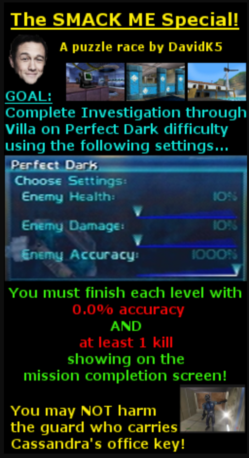 Complete Perfect Agent RTA (Defection to Skedar Ruins) without taking any damage.