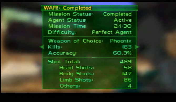 Complete WAR! on Perfect Agent, killing every single Skedar that spawns (there's about 50-60 that spawn for each King).