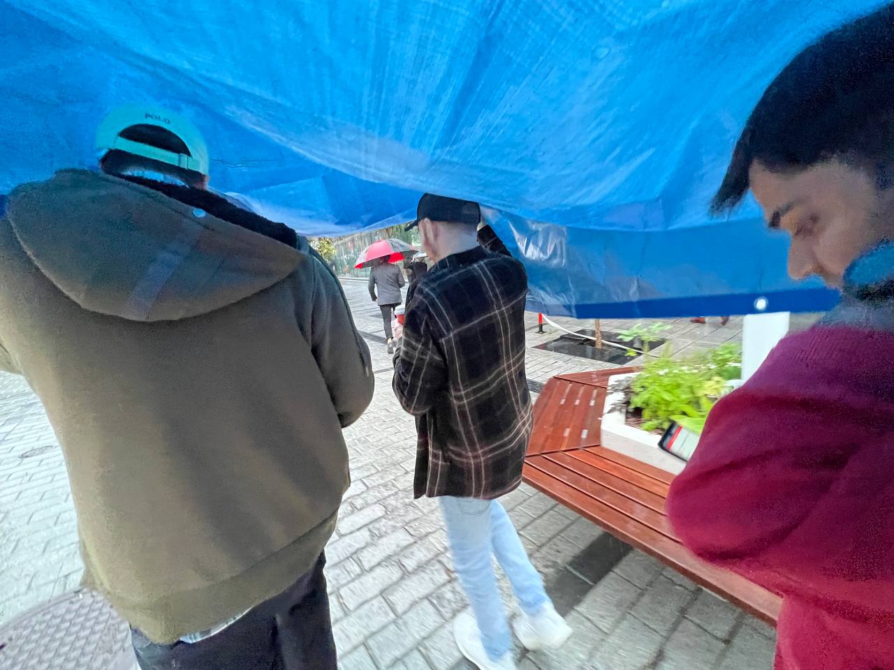of a downpour after stopping at Dollarama to buy a tarp as an umbrella style substitute, and had lunch